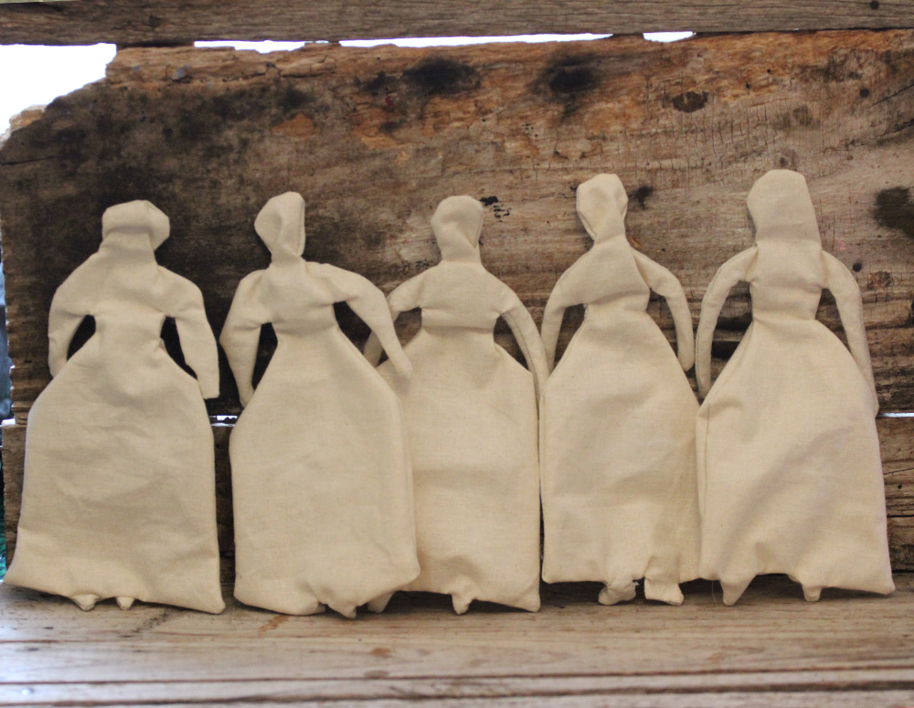 I’ve painted several of the embroidery inspired watercolours, all very loose and moody winter colours. After working on these watercolours and really loving the simplicity of the women’s form, I wondered what if I made some small dolls in their shape.
