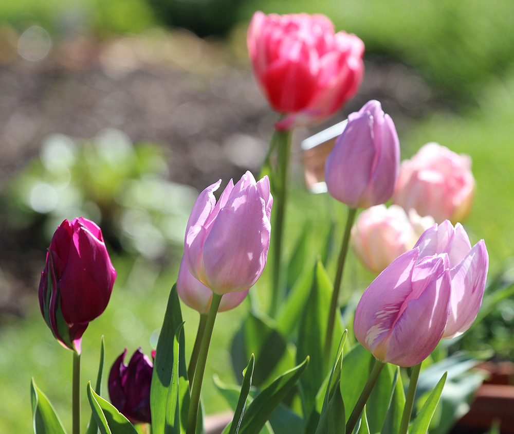 I’m glad I grey these tulips in pots, because of the amount of rain we’ve had. It also was lovely to have them greet us at the door. The name of this variety is called ‘Princely Duo’, a lovely combination of burgundy and pink.