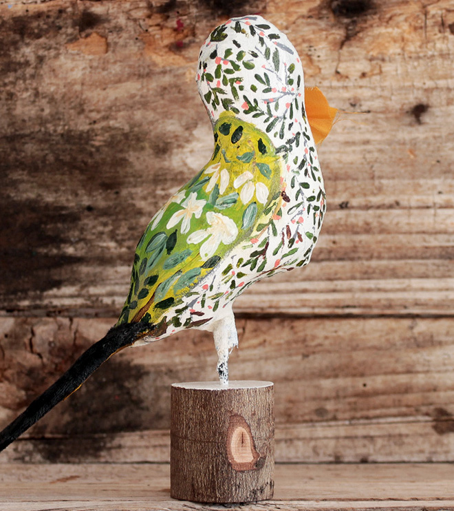 Hand painted fabric sculpture on a Tasmanian hardwood base by artist Grace Garton