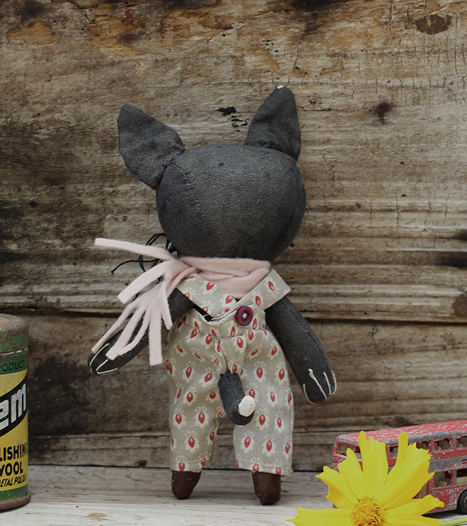 Wyndham is a small calico art doll in the form of a Tasmanian devil.