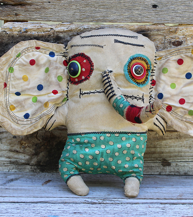 Yulia is an original one-of-a-kind Grace H Garton design and is part of a series called Very Odd Elephants.